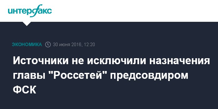 Источники не исключили назначения главы "Россетей" предсовдиром ФСК