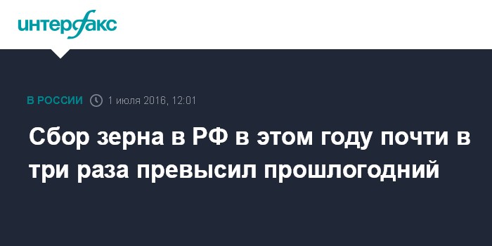 Сбор зерна в РФ в этом году почти в три раза превысил прошлогодний