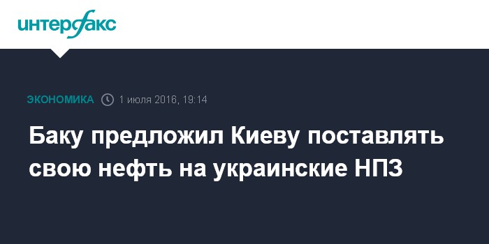 Баку предложил Киеву поставлять свою нефть на украинские НПЗ