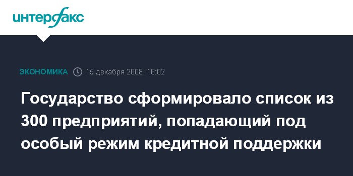 Государство сформировало список из 300 предприятий, попадающий под особый режим кредитной поддержки