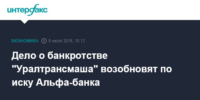 Дело о банкротстве "Уралтрансмаша" возобновят по иску Альфа-банка