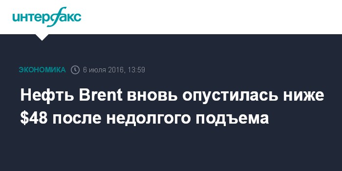 Нефть Brent вновь опустилась ниже $48 после недолгого подъема