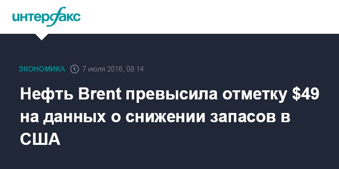 Нефть Brent превысила отметку $49 на данных о снижении запасов в США