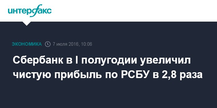 Москва. 7 июля. INTERFAX.RU - Сбербанк России в первом полугодии 2016 года увеличил чистую прибыль по РСБУ в 2,8 раза - до 229,4 млрд рублей по сравнению с 81,6 млрд рублей за аналогичный период 2015 года, говорится в сообщении банка.