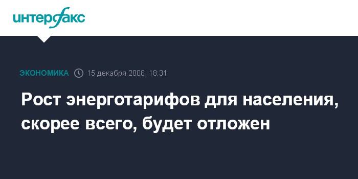 Москва. 15 декабря. ИНТЕРФАКС - Энерготарифы для населения, скорее всего, не вырастут с начала года. Как сообщили "Интерфаксу" источники в отрасли, правительство обсуждает перенос срока ввода новых энерготарифов с начала года на несколько месяцев.