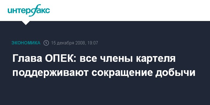 Москва. 15 декабря. INTERFAX.RU - Все члены Организации стран-экспортеров нефти (ОПЕК), включая Саудовскую Аравию, крупнейшего производителя нефти в мире, поддерживают снижение добычи на предстоящем на этой неделе заседании, заявил глава картеля и министр нефти Алжира Шакиб Хелил, сообщило агентство Bloomberg.