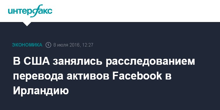 Москва. 8 июля. INTERFAX.RU - Федеральная налоговая служба США (IRS) заинтересовалась переводом активов Facebook в Ирландию в 2010 году и потребовала от суда обязать компанию предоставить ей данные об этом, сообщают американские СМИ.
