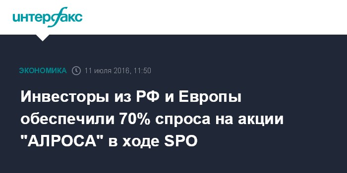 Москва. 11 июля. INTERFAX.RU - Главными участниками приватизации 10,9% акций АК "АЛРОСА" стали инвесторы из России и Европы.