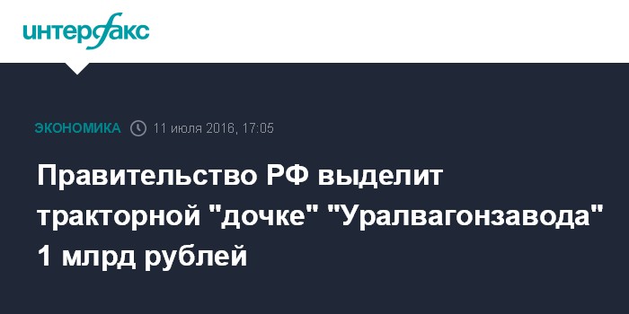 Правительство РФ выделит тракторной "дочке" "Уралвагонзавода" 1 млрд рублей