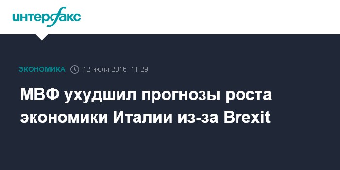 Москва. 12 июля. INTERFAX.RU - Международный валютный фонд (МВФ) немного снизил прогнозы роста итальянского ВВП на текущий и следующий годы, поскольку решение Великобритании о выходе и Европейского союза повышает неопределенность и, скорее всего, отрицательно скажется на экономике Италии.