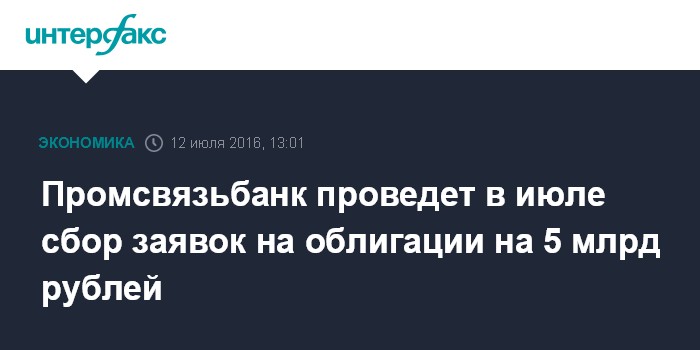 Промсвязьбанк проведет в июле сбор заявок на облигации на 5 млрд рублей
