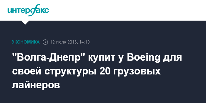Москва. 12 июля. INTERFAX.RU - Российская группа компаний "Волга-Днепр" покупает для своей "дочки" AirBridgeCargo 20 грузовых самолетов Boeing-747-8 Freighter.