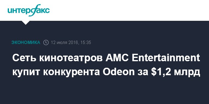 Москва. 12 июля. INTERFAX.RU - Крупнейшая в мире сеть кинотеатров AMC Entertainment Holdings Inc. достигла соглашения о приобретении базирующейся в Великобритании сети Odeon & UCI Cinemas Group у фонда Terra Firma за 921 млн фунтов стерлингов ($1,2 млрд), говорится в совместном пресс-релизе компаний.