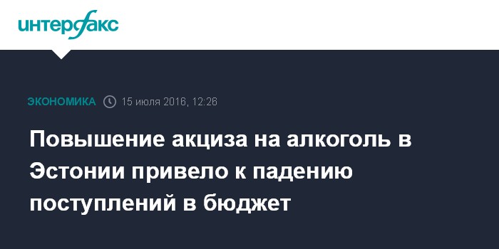 Москва. 15 июля. INTERFAX.RU - Повышение акциза на алкоголь в Эстонии привело к значительному сокращению поступлений в бюджет государства и уходу потребителей продукции на рынок соседней Латвии.