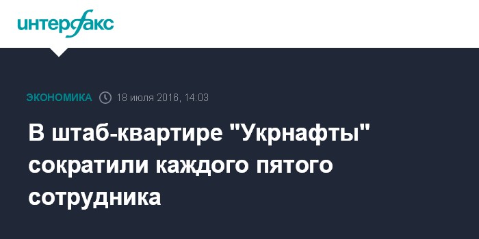 Москва. 18 июля. INTERFAX.RU - Крупнейшая нефтедобывающая компания Украины ПАО "Укрнафта" сократила 20% персонала своего центрального аппарата, сообщила пресс-служба компании.