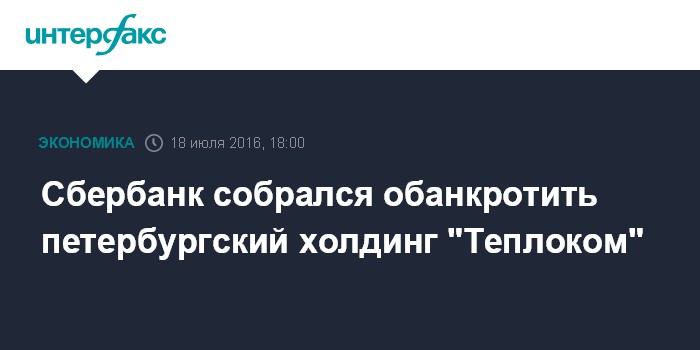Сбербанк собрался обанкротить петербургский холдинг "Теплоком"