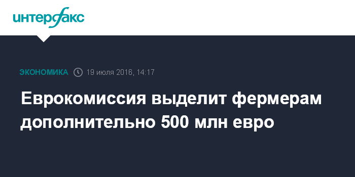 Москва. 19 июля. INTERFAX.RU - Европейская комиссия (ЕК) объявила о дополнительном пакете чрезвычайных мер с использованием всех средств, доступных в рамках Общей сельскохозяйственной политики ЕС, для поддержки фермеров Евросоюза, говорится в коммюнике ЕК.