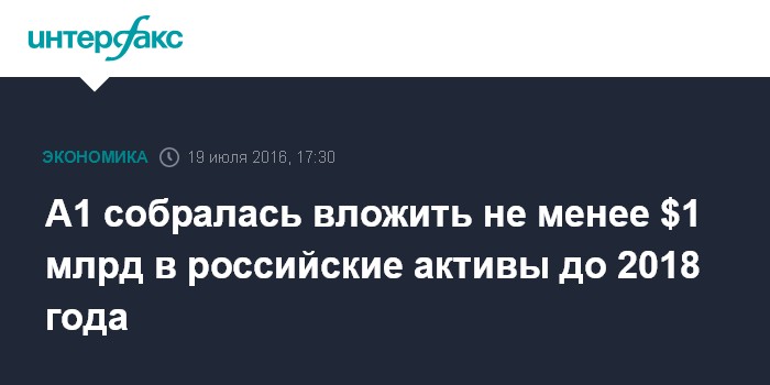 А1 собралась вложить не менее $1 млрд в российские активы до 2018 года