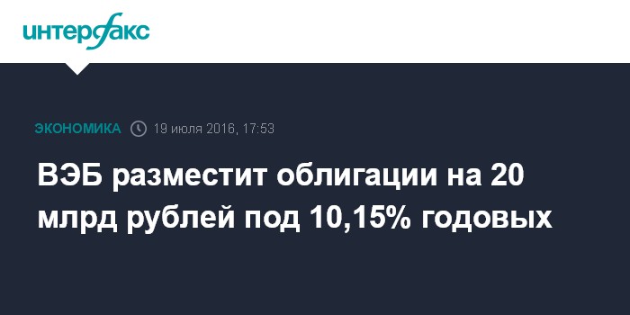 ВЭБ разместит облигации на 20 млрд рублей под 10,15% годовых