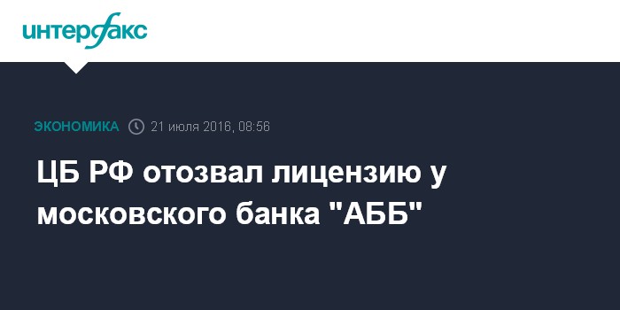 ЦБ РФ отозвал лицензию у московского банка "АББ"