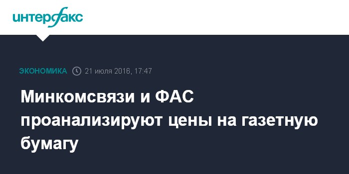 Москва. 21 июля. INTERFAX.RU - Минкомсвязи РФ планирует совместно с ФАС провести анализ всей цепочки реализации газетной бумаги - от производителя до потребителя, сообщил в четверг замглавы Минкомсвязи РФ Алексей Волин.