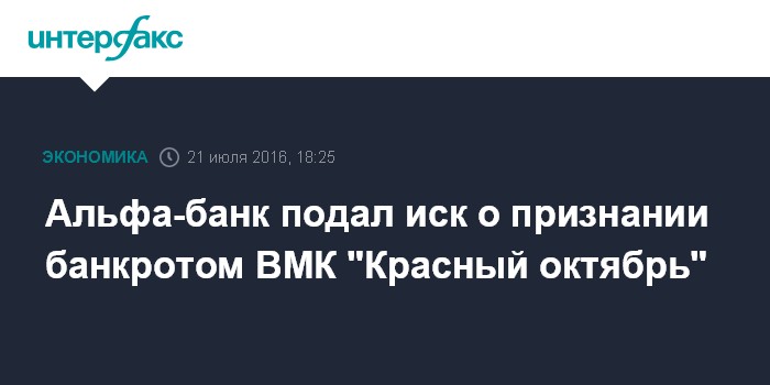 Альфа-банк подал иск о признании банкротом ВМК "Красный октябрь"