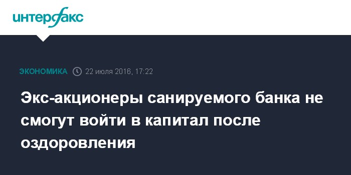 Экс-акционеры санируемого банка не смогут войти в капитал после оздоровления