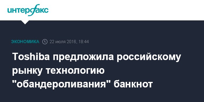 Toshiba предложила российскому рынку технологию "обандероливания" банкнот