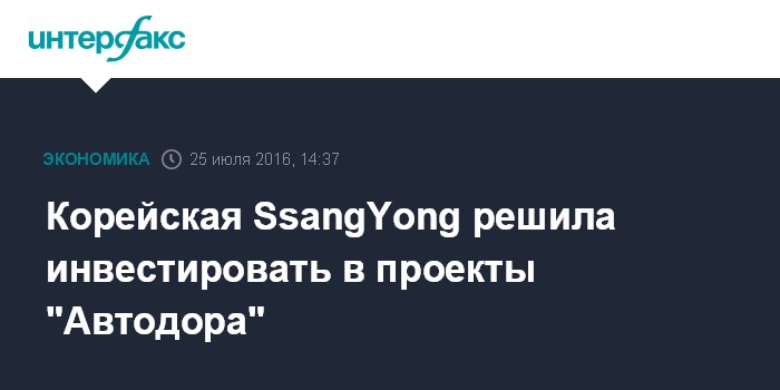 Корейская SsangYong решила инвестировать в проекты "Автодора"
