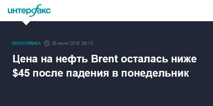 Цена на нефть Brent осталась ниже $45 после падения в понедельник