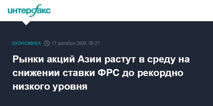 Москва. 17 декабря. INTERFAX.RU - Азиатские фондовые индексы растут в среду на новостях о снижении базовой процентной ставки Федеральной резервной системы до целевого диапазона от 0% до 0,25% годовых, сообщило агентство Bloomberg.