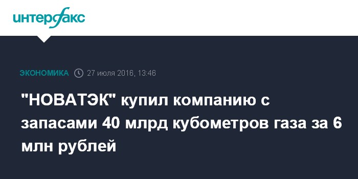 "НОВАТЭК" купил компанию с запасами 40 млрд кубометров газа за 6 млн рублей