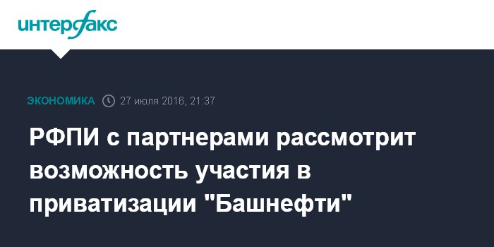 РФПИ с партнерами рассмотрит возможность участия в приватизации "Башнефти"