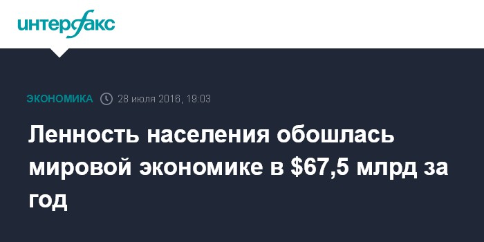 Ленность населения обошлась мировой экономике в $67,5 млрд за год