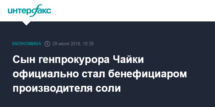 Сын генпрокурора Чайки официально стал бенефициаром производителя соли