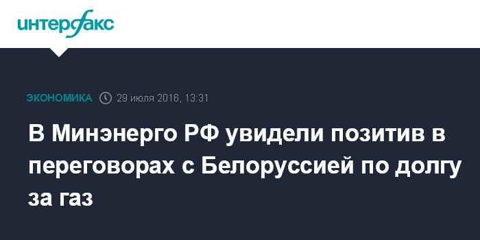 Москва. 29 июля. INTERFAX.RU - Минэнерго РФ отмечает позитивные подвижки в урегулировании вопроса выплаты долга Белоруссии за газ, сообщил министр энергетики РФ Александр Новак журналистам.