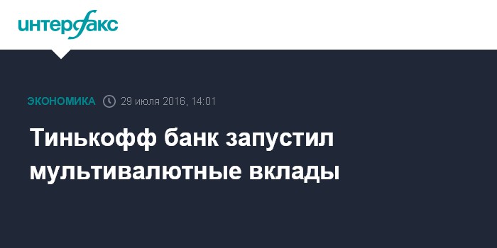 Москва. 29 июля. INTERFAX.RU - Тинькофф банк запустил мультивалютные вклады, клиенты банка теперь могут хранить деньги на одном вкладе сразу в нескольких валютах - в рублях, долларах, евро и фунтах стерлингов, говорится в пресс-релизе банка.