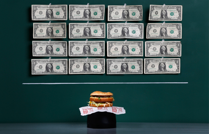 Согласно исследованию, "Биг-Мак" в июле 2016 года стоит в России $2,05 по сравнению с $5,04 в США, что указывает на справедливый курс на уровне 25,79 рубля за доллар США, то есть на 59,3% выше среднего обменного курса ЦБ в прошлом месяце.