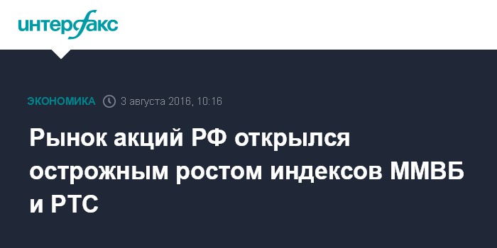 Москва. 3 августа. INTERFAX.RU - Рынок акций РФ открылся в среду коррекционным ростом цен blue chips на фоне стабилизации нефти и отскока Европы после падения, индексы ММВБ и РТС за минуту торгов прибавили 0,2-0,3%.