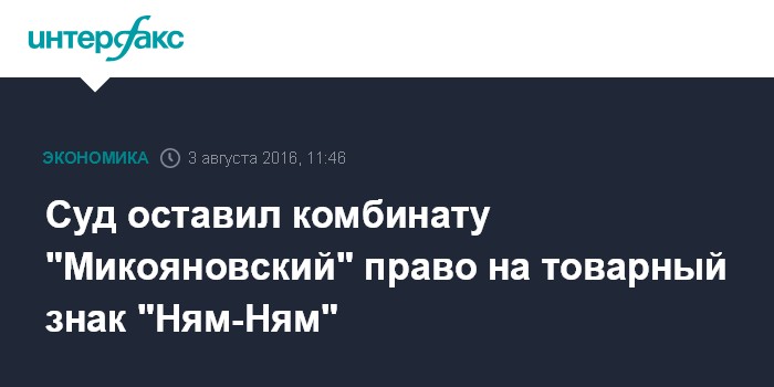 Суд оставил комбинату "Микояновский" право на товарный знак "Ням-Ням"