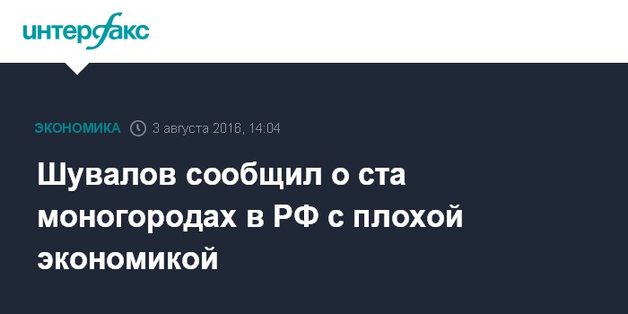 Шувалов сообщил о ста моногородах в РФ с плохой экономикой