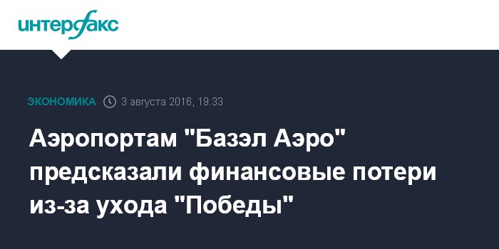Москва. 3 августа. INTERFAX.RU - "Базэл Аэро" может не покрыть финансовые потери из-за ухода авиакомпании "Победа" (группа "Аэрофлот") из аэропортов Краснодарского края, полагает гендиректор поисковика авиабилетов Pososhok.ru Кирилл Фаминский.