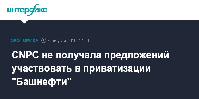 CNPC не получала предложений участвовать в приватизации "Башнефти"