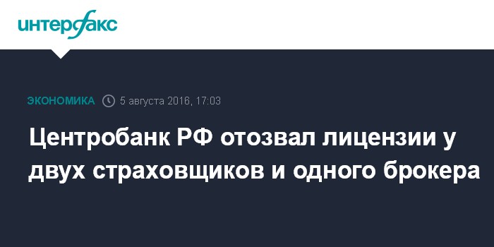 Центробанк РФ отозвал лицензии у двух страховщиков и одного брокера