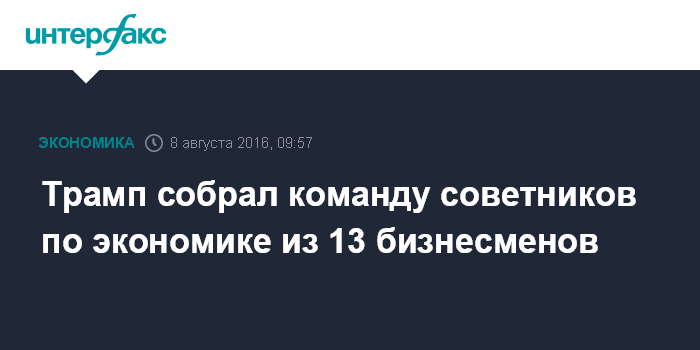 Москва. 8 августа. INTERFAX.RU - Кандидат в президенты США от Республиканской партии Дональд Трамп собрал команду советников по экономике, состоящую преимущественно из миллиардеров, пишет The Washington Post.