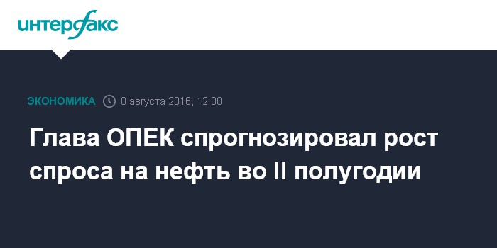 Москва. 8 августа. INTERFAX.RU - Организация стран-экспортеров нефти (ОПЕК) ожидает роста мирового спроса на нефть во втором полугодии этого года, сообщил президент ОПЕК, министр нефти Катара Мохаммед бин Салех аль-Сада, слова которого приводятся в сообщении картеля.
