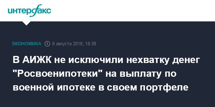 В АИЖК не исключили нехватку денег "Росвоенипотеки" на выплату по военной ипотеке в своем портфеле