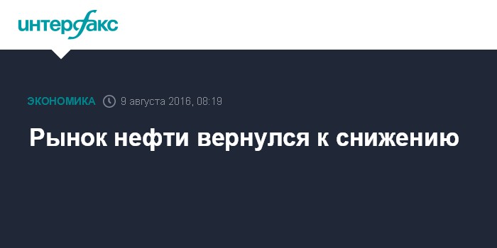 Москва. 9 августа. INTERFAX.RU - Рынок нефти вернулся к снижению в ходе торгов во вторник после активного роста накануне, связанного с оптимизмом в отношении восстановления спроса во втором полугодии и перспективами договоренности о заморозке нефтедобычи рядом стран ОПЕК.