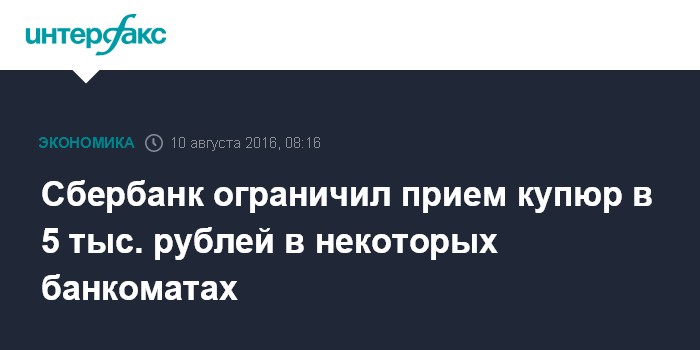 Весной 2015 года Сбербанк также ограничивал прием купюр в 5 тыс. рублей в ряде терминалов "в целях усиления безопасности и сохранности средств клиентов".