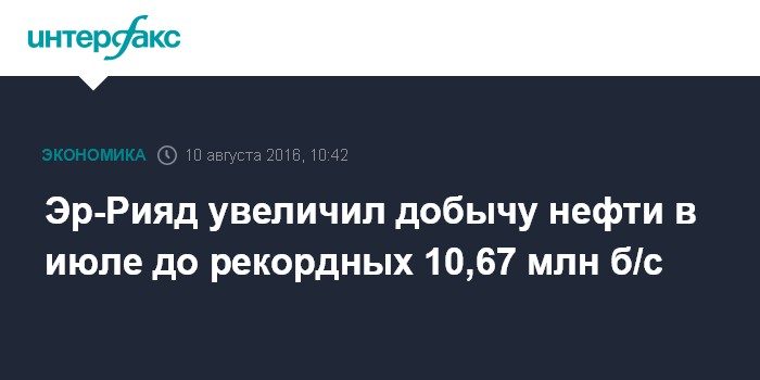 Предыдущий месячный рекорд был установлен Саудовской Аравией в июне 2015 года на уровне 10,56 млн б/с.
